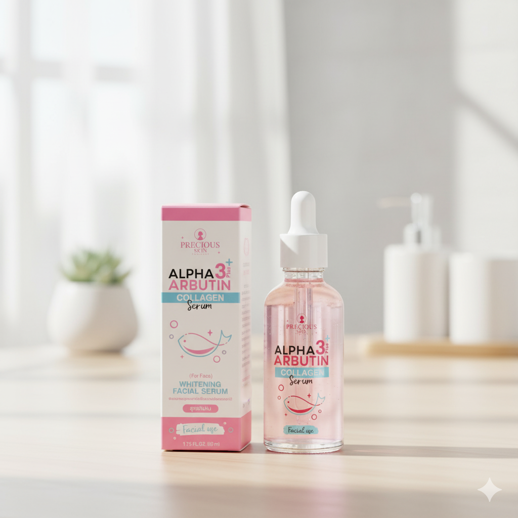 আপনার মুখের ত্বকের জন্য আলফা আর্বুটিন এবং কোলাজেনের দ্বৈত সুবিধা! Precious Skin Alpha Arbutin 3 Plus Collagen Serum কালো দাগ, বলিরেখা এবং মলিনতা দূর করে ত্বককে দেয় উজ্জ্বলতা, তারুণ্য এবং প্রয়োজনীয় পুষ্টি।