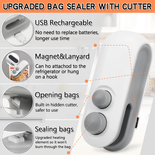 Rechargeable Mini Bag Sealer, 2-In-1 Heat Sealer with Cutter for Chip Bags