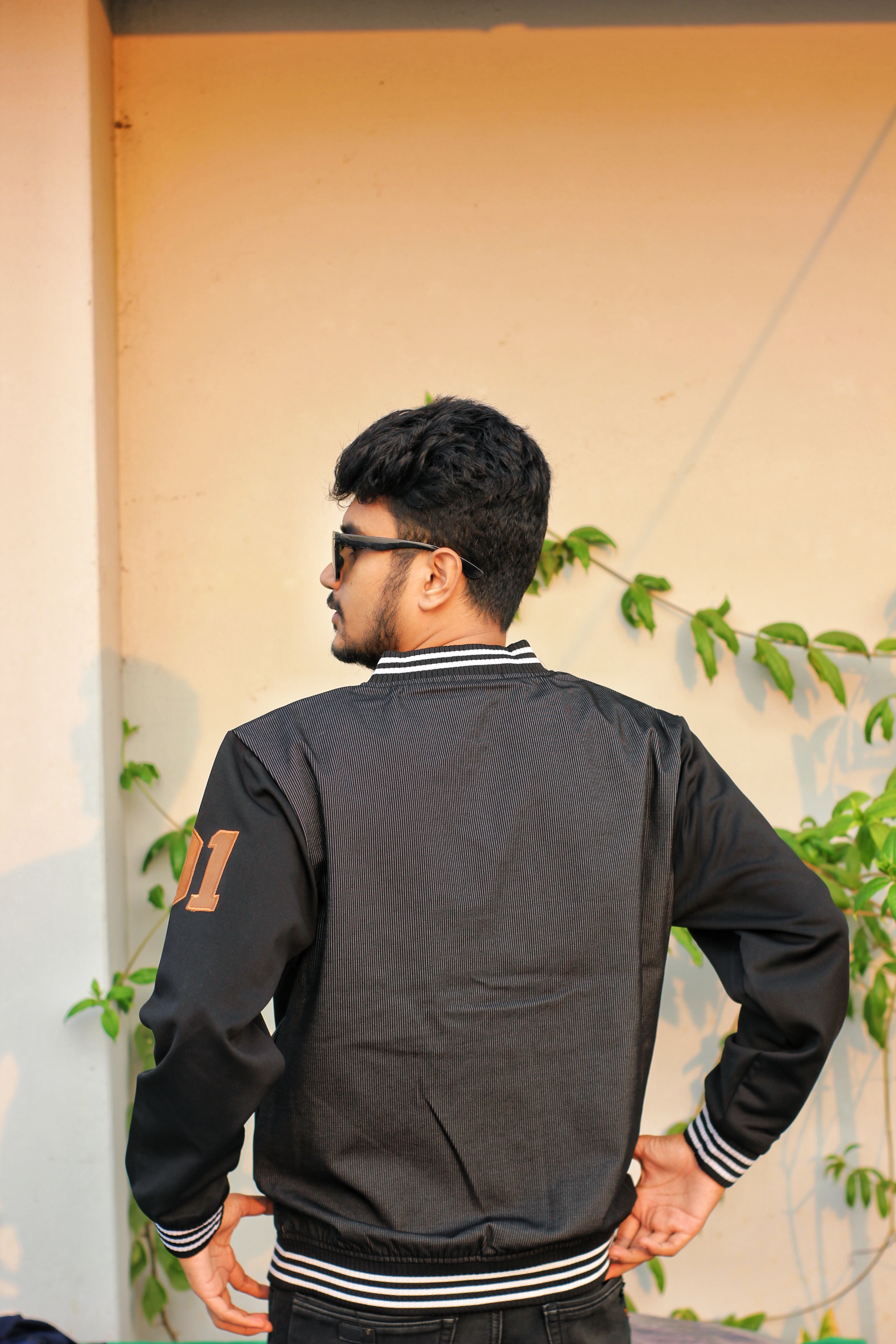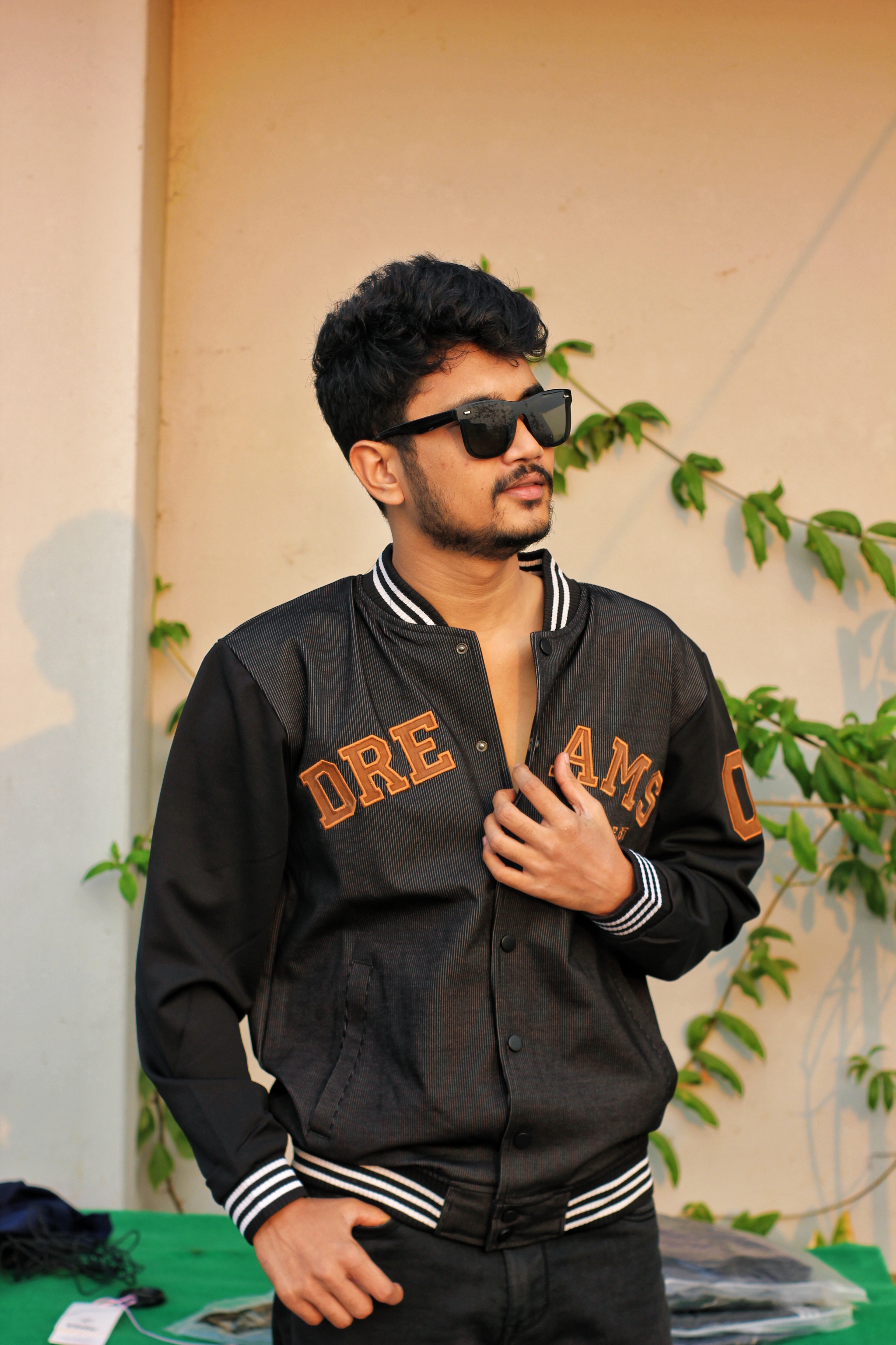 A perfect blend of casual confidence and modern streetwear. This look features a sleek black varsity jacket paired with bold shades creating a stylish statement for the trendsetters who love standing out effortlessly. Ideal inspiration for your everyday urban fashion vibe.